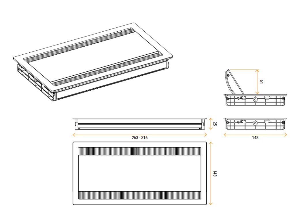 Die Durchführung wird durch Einlassen in die Öffnung in der Tischplatte installiert. Genaue Ausschnittmaße finden Sie in der technischen Zeichnung. Ja, EXIT DUAL 2.0 kann in Arbeitstische mit Standardabmessungen und ausreichender Plattenstärke eingebaut werden.Wie wird EXIT installiert?