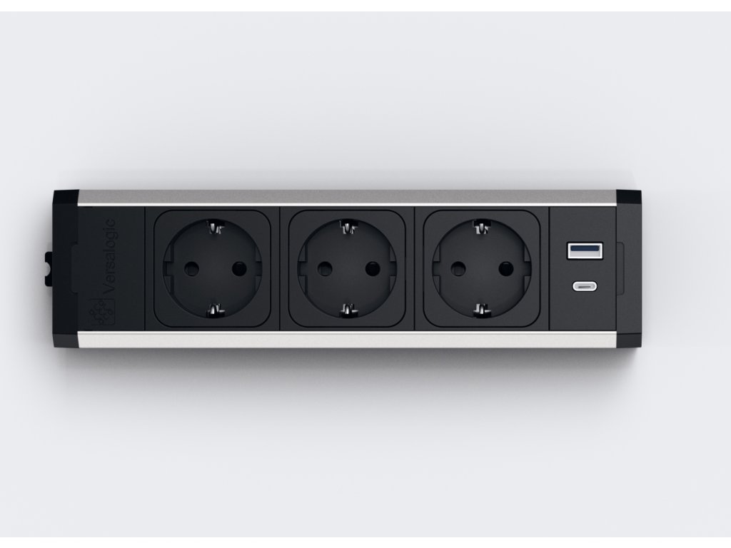 ASA 06000F00002 VERSATEK Steckdosenleiste,, 3x Steckdose, 2x RJ45 CAT.6 STP, GST IN, eloxiertes Aluminiumprofil