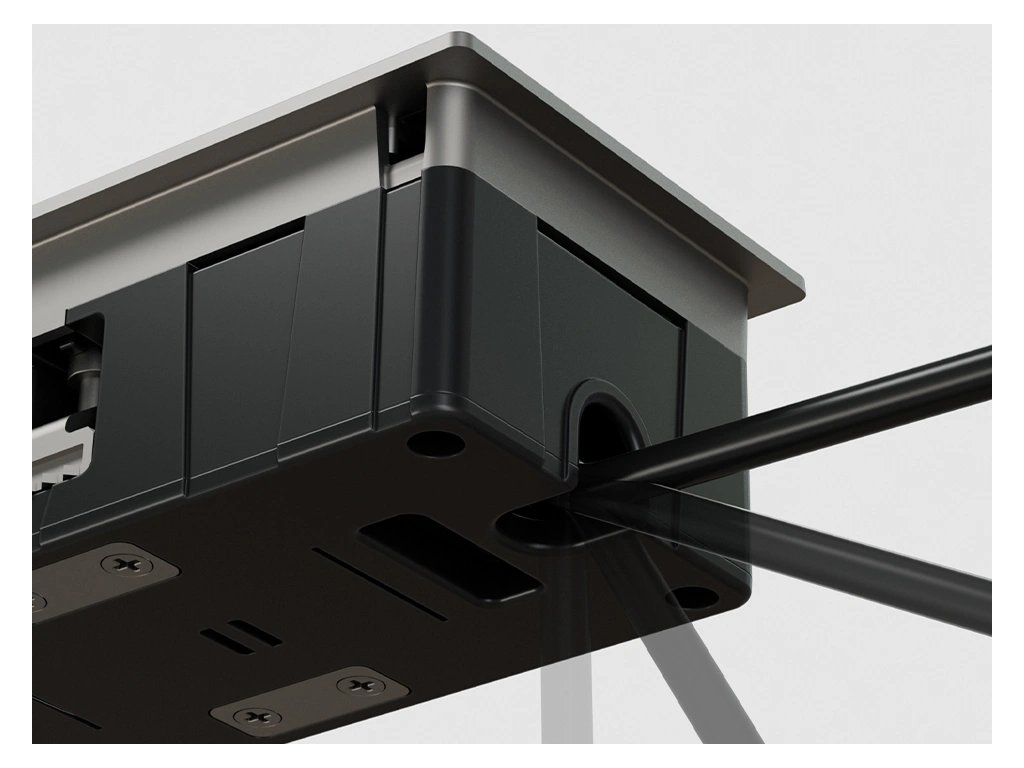 Luxuriöse Einbausteckdose VersaHit für Küchen. Enthält 1× Steckdose, 1× USB-Ladegerät A+C und flexibler Anschluss – Kabel (2 m) mit offenem Ende (Stecker liegt separat bei). Rahmen und Deckel bestehen aus robuster Zamak-Legierung (oder Mattlackierung) in Edelstahl-Optik. Dank unabhängigen Schiebedeckeln können Sie die Steckdosen bei Nichtgebrauch verbergen. Mit IP54-Schutz (geschlossen) ist sie sicher gegen Spritzwasser und Staub. Ideal für Küchen, Wohnräume und Büros. Das Anschlusskabel hat ein offenes Ende (Aderendhülsen), um es einfach durch kleine Montageöffnungen führen zu können. Der Stecker liegt bei (Installation durch Fachkraft empfohlen).