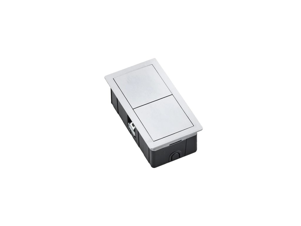 Luxuriöse Einbausteckdose VersaHit für Arbeitsplatten. Enthält 1× Steckdose und flexibler Anschluss – Kabel (2 m) mit offenem Ende (Stecker liegt separat bei). Rahmen und Deckel bestehen aus robuster Zamak-Legierung (oder Mattlackierung) in Edelstahl-Optik. Dank Schiebeverschlussmechanismus können Sie die Steckdosen bei Nichtgebrauch verbergen. Mit IP54-Schutz (geschlossen) ist sie sicher gegen Spritzwasser und Staub. Ideal für Küchen, Wohnräume und Büros. Das Anschlusskabel hat ein offenes Ende (Aderendhülsen), um es einfach durch kleine Montageöffnungen führen zu können. Der Stecker liegt bei (Installation durch Fachkraft empfohlen).
