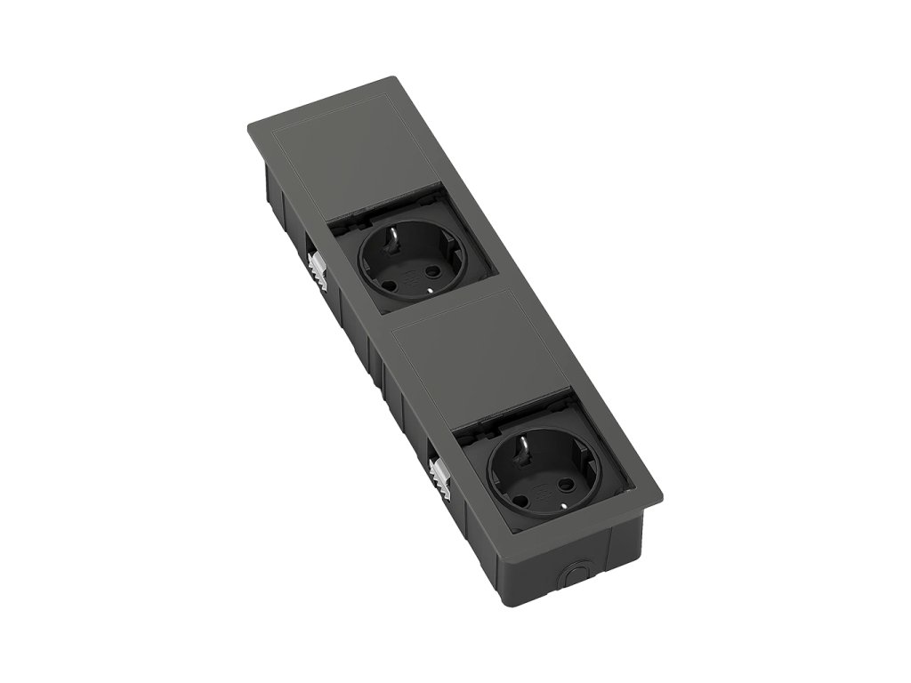 Luxuriöse Einbausteckdose VersaHit für Küchen. Enthält 2× Steckdose und flexibler Anschluss – Kabel (2 m) mit offenem Ende (Stecker liegt separat bei). Rahmen und Deckel bestehen aus robuster Zamak-Legierung (oder Mattlackierung) in Zinn-Optik. Dank unabhängigen Schiebedeckeln können Sie die Steckdosen bei Nichtgebrauch verbergen. Mit IP54-Schutz (geschlossen) ist sie sicher gegen Spritzwasser und Staub. Ideal für Küchen, Wohnräume und Büros. Das Anschlusskabel hat ein offenes Ende (Aderendhülsen), um es einfach durch kleine Montageöffnungen führen zu können. Der Stecker liegt bei (Installation durch Fachkraft empfohlen).