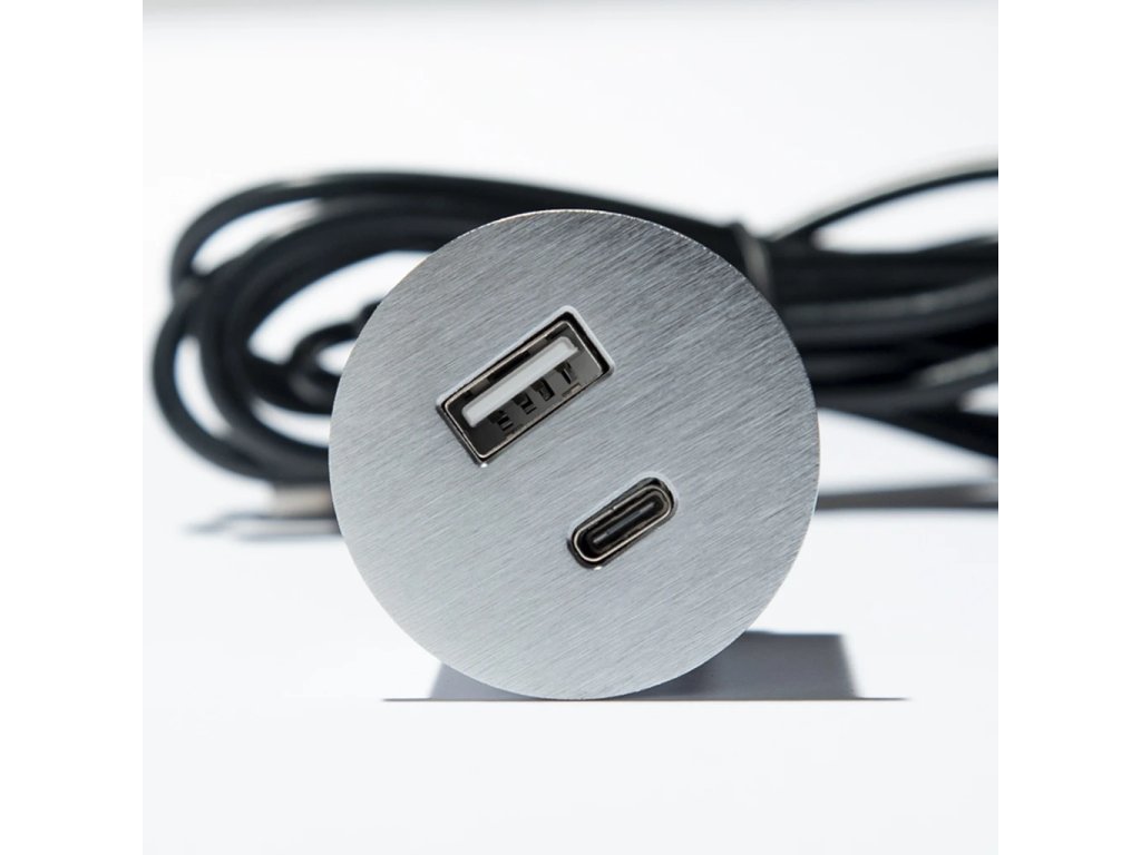 ASA 06029Z00033 VERSAPICK Einbau-Ladeeinheit, 1x USB-Ladegerät A+C, USB-A-Neztkabel 1,8 m inkl. Euro-/USB-Stecker, Kreis, gebürsteter Stahl-Optik