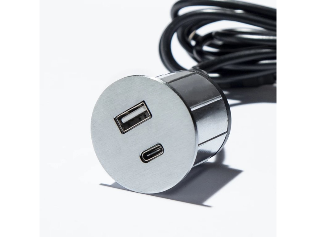 Bietet USB-Schnellladung A+C mit einer Gesamtleistung von 30 W (5V/3A oder 9V/2A). Das mitgelieferte 1,8m USB-A-Kabel erleichtert die Verlegung zwischen Möbelteilen und ist mit Euro/USB-Steckern kompatibel.
