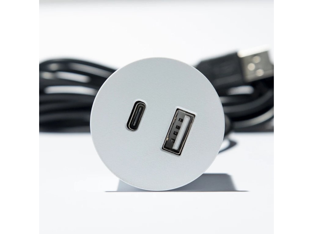 Bietet USB-Schnellladung A+C mit einer Gesamtleistung von 30 W (5V/3A oder 9V/2A). Das mitgelieferte 1,8m USB-A-Kabel erleichtert die Verlegung zwischen Möbelteilen und ist mit Euro/USB-Steckern kompatibel.