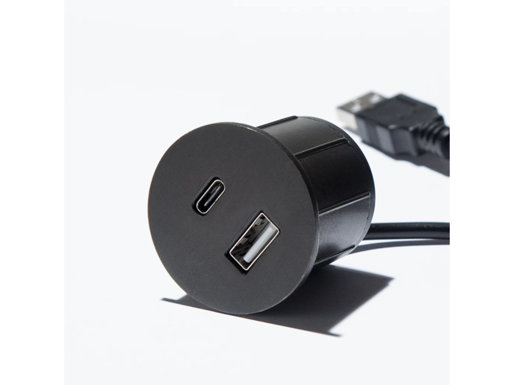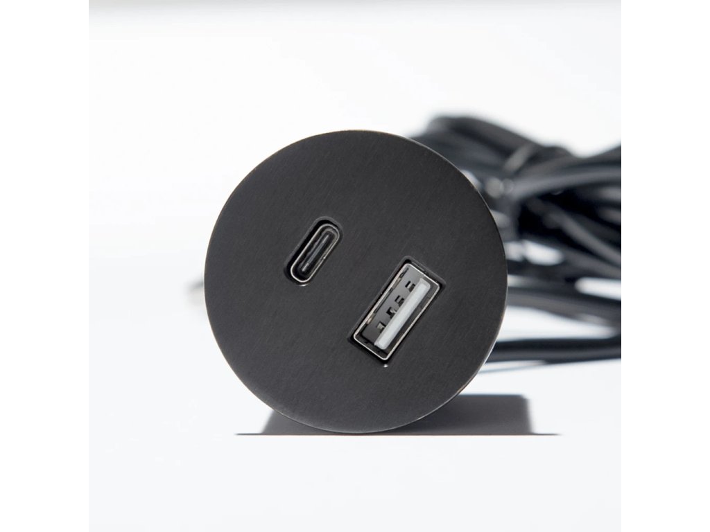 ASA 06029Z00037 VERSAPICK Einbau-Ladeeinheit, 1x USB-Ladegerät A+C, USB-A-Neztkabel 1,8 m inkl. Euro-/USB-Stecker, Kreis, schwarz