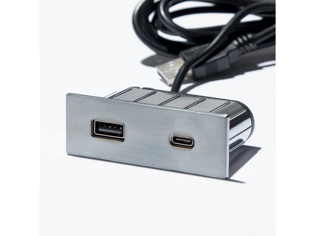 ASA 06029Z00049 VERSAPICK Einbau-Ladeeinheit, 1x USB-Ladegerät A+C, USB-A-Neztkabel 1,8 m inkl. Euro-/USB-Stecker, Rechteck, gebürsteter Stahl-Optik