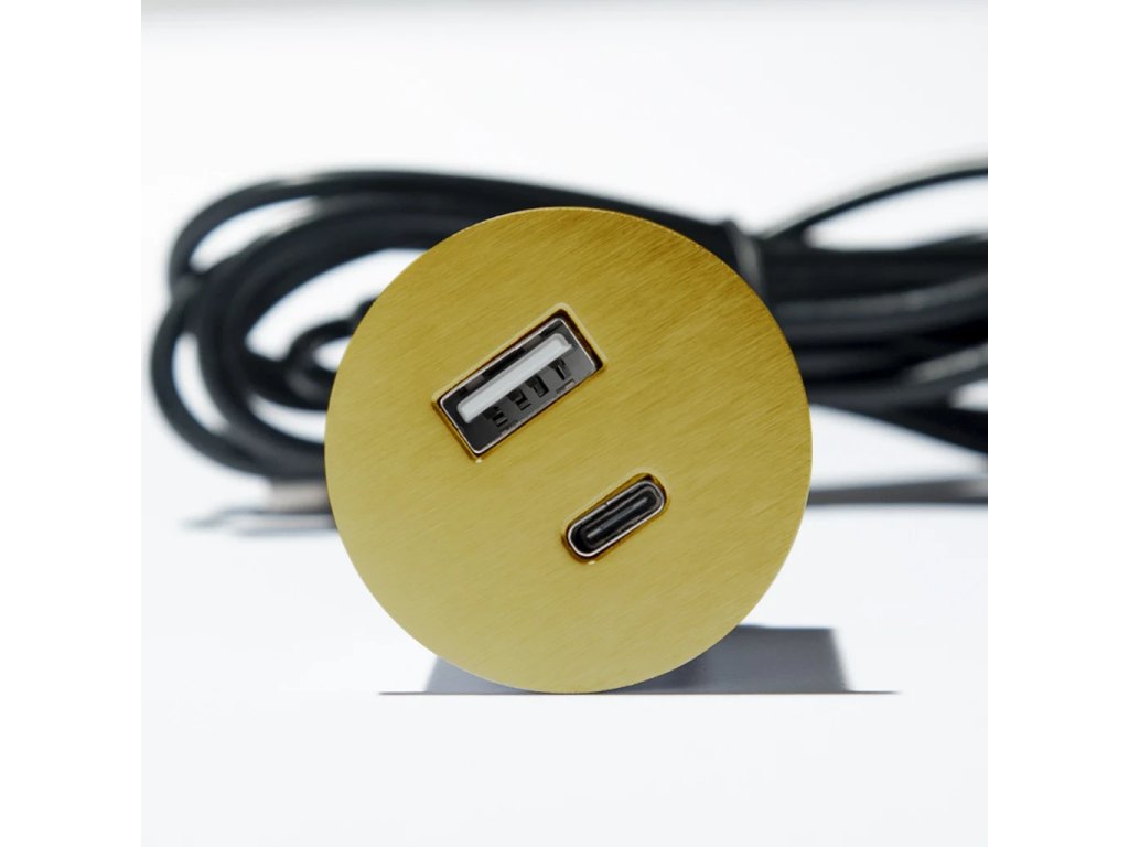 ASA 06029Z00066 VERSAPICK Einbau-Ladeeinheit, 1x USB-Ladegerät A+C, USB-A-Neztkabel 1,8 m inkl. Euro-/USB-Stecker, Kreis, Gold-Optik