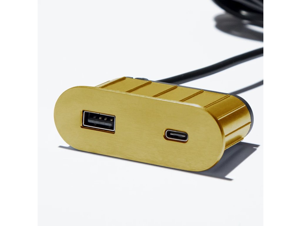 ASA 06029Z00092 VERSAPICK Einbau-Ladeeinheit, 1x USB-Ladegerät A+C, USB-A-Neztkabel 1,8 m inkl. Euro-/USB-Stecker, Oval, Gold-Optik