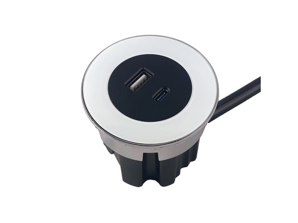 VERSADOT LITE USB ist ein kompaktes Ladegerät für den Einbau in Möbel. Dieses Ladegerät in weiß bietet moderne USB A + USB-C Anschlüsse mit einer Gesamtleistung von bis zu 18 W. Mit einem Durchmesser von 68 mm und einer Tiefe von 57.5 mm passt es auch in dünne Platten. Ideal zum schnellen Aufladen mobiler Geräte ohne unnötige Kabel auf dem Tisch.