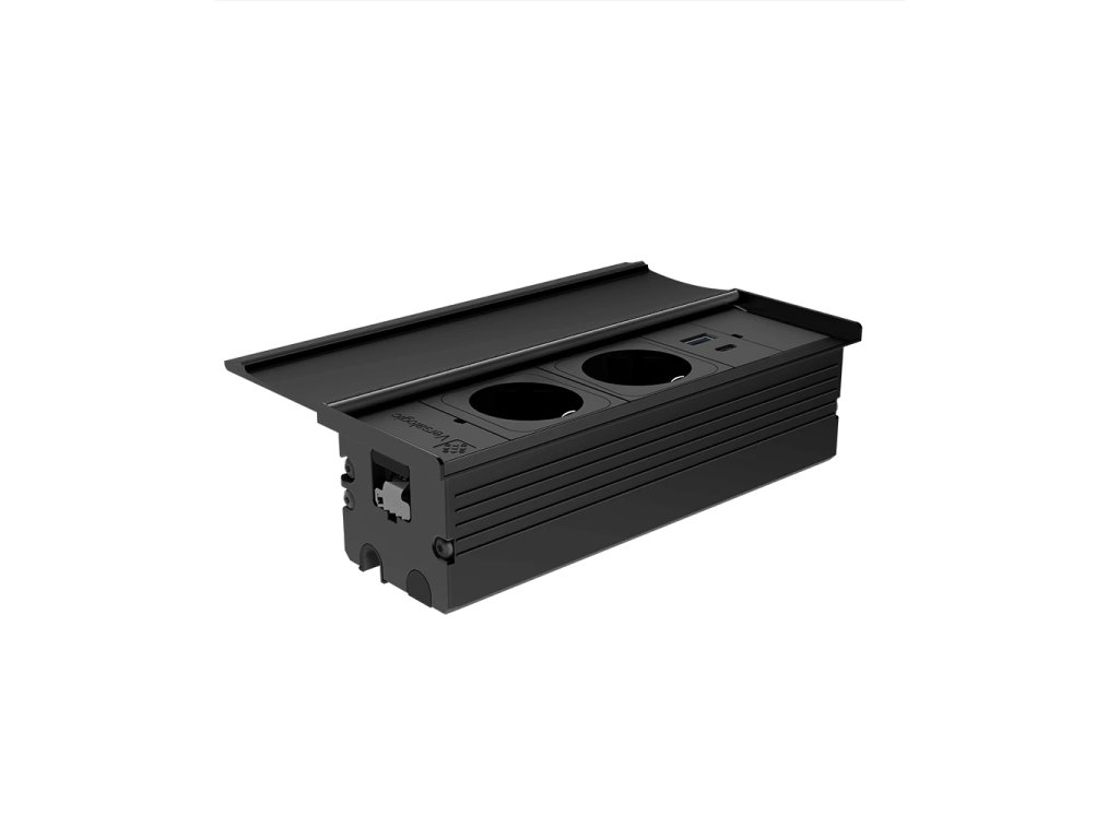 ASA 06039F00070 VERSALID Einbau-Steckdoseneinheit, mit Deckel 3x Steckdose, 1x Ladegerät USB C+C, Kabel 0,5 m mit GST, schwarz