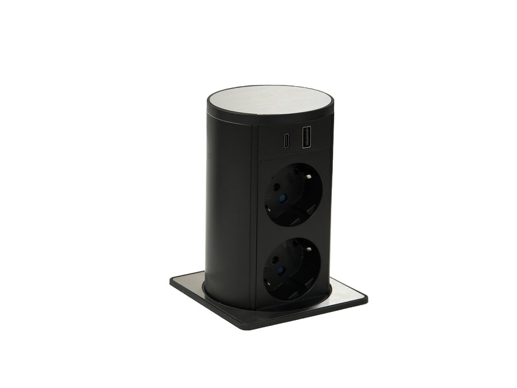 ASA 06047F00108 VERSALIFT 2x Steckdose, 1x USB-Ladegerät A+C, Kabel 2 m, Stecker separat, gebürsteter Stahl-Optik
