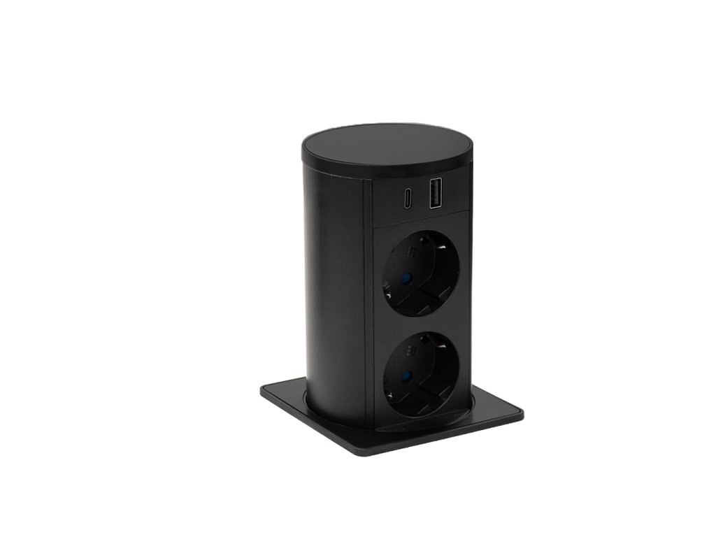 ASA 06047F00109 VERSALIFT 2x Steckdose, 1x USB-Ladegerät A+C, Kabel 2 m, Stecker separat, schwarz gebürstet