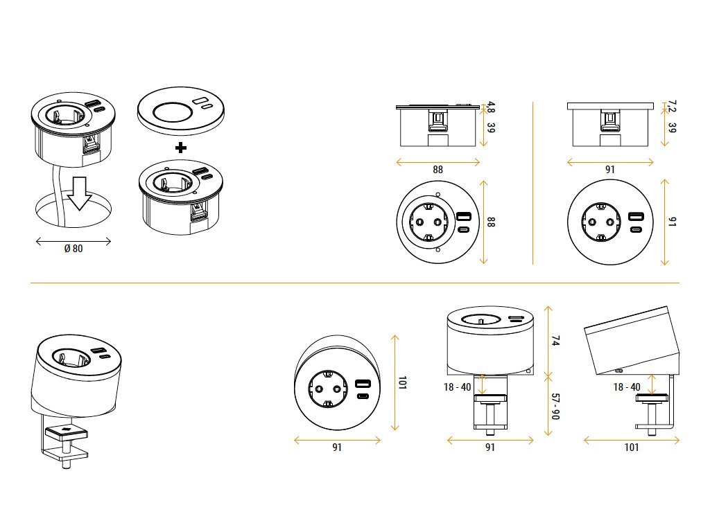 - Material: Widerstandsfähiges Polymer mit matter Oberfläche
