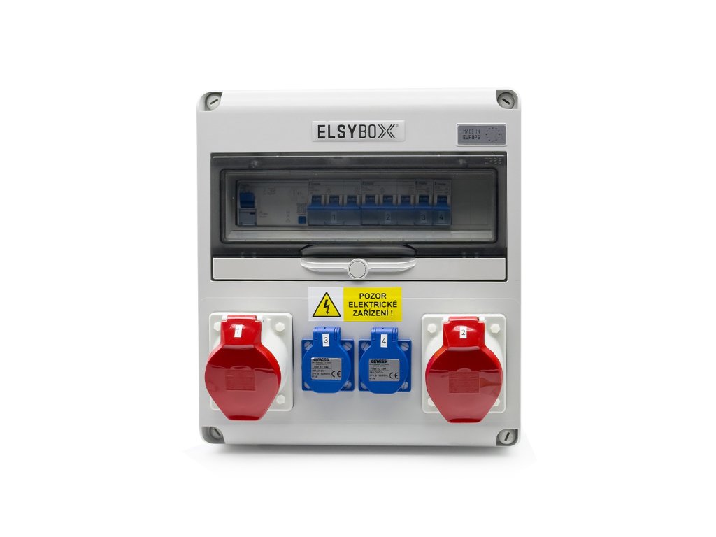 ELSYBOX P693F02020S Steckdosenkombination 2x CEE 32A, 2x 230V, mit LS und FI, Kunststoff, komplett verdrahtet