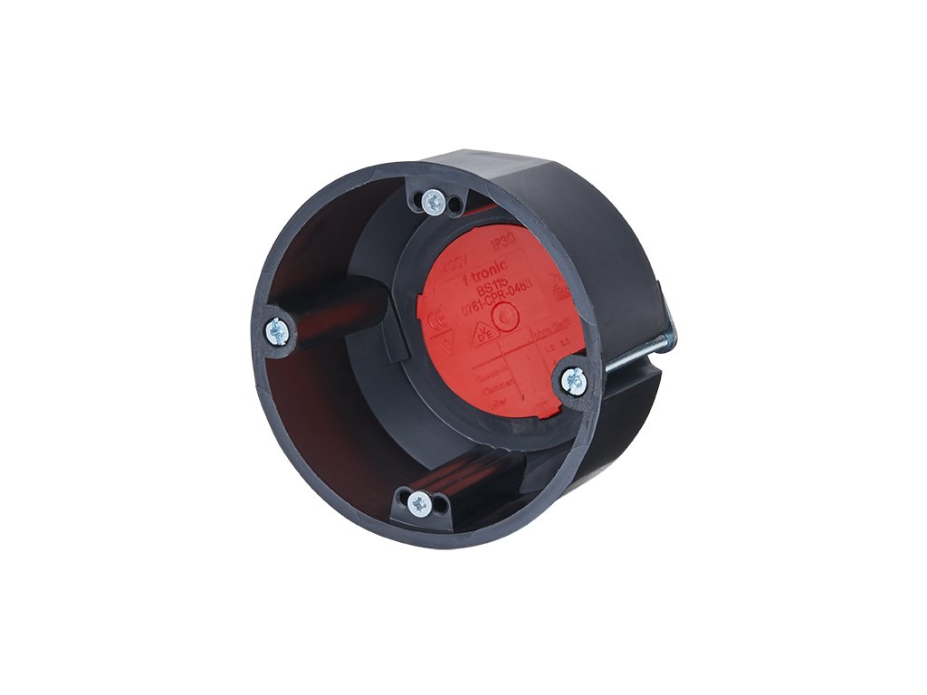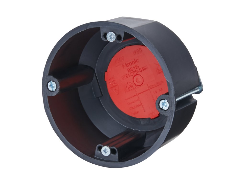 F-TRONIC 7500001 BS115 Hohlwand-Brandschutzdose, 1-fach, Fräßlochdurchmesser 74 mm, 45 mm tief, schwarz