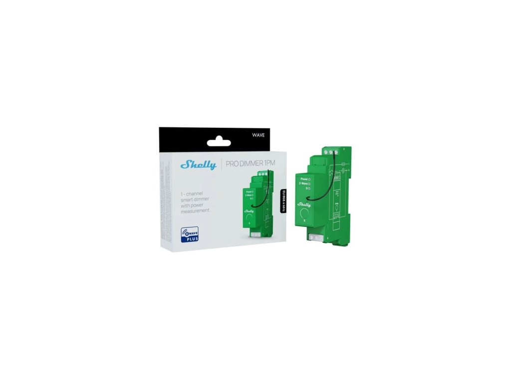 Shelly Wave Pro Dimmer 1PM ist ein professioneller 1-Kanal intelligenter Dimmer für die DIN-Schiene mit Verbrauchsmessung. Geeignet für die Automatisierung von Haushalten und Fernsteuerungsgeräten. Montage auf der DIN-Schiene. Verbesserte Sicherheitsfunktionen.